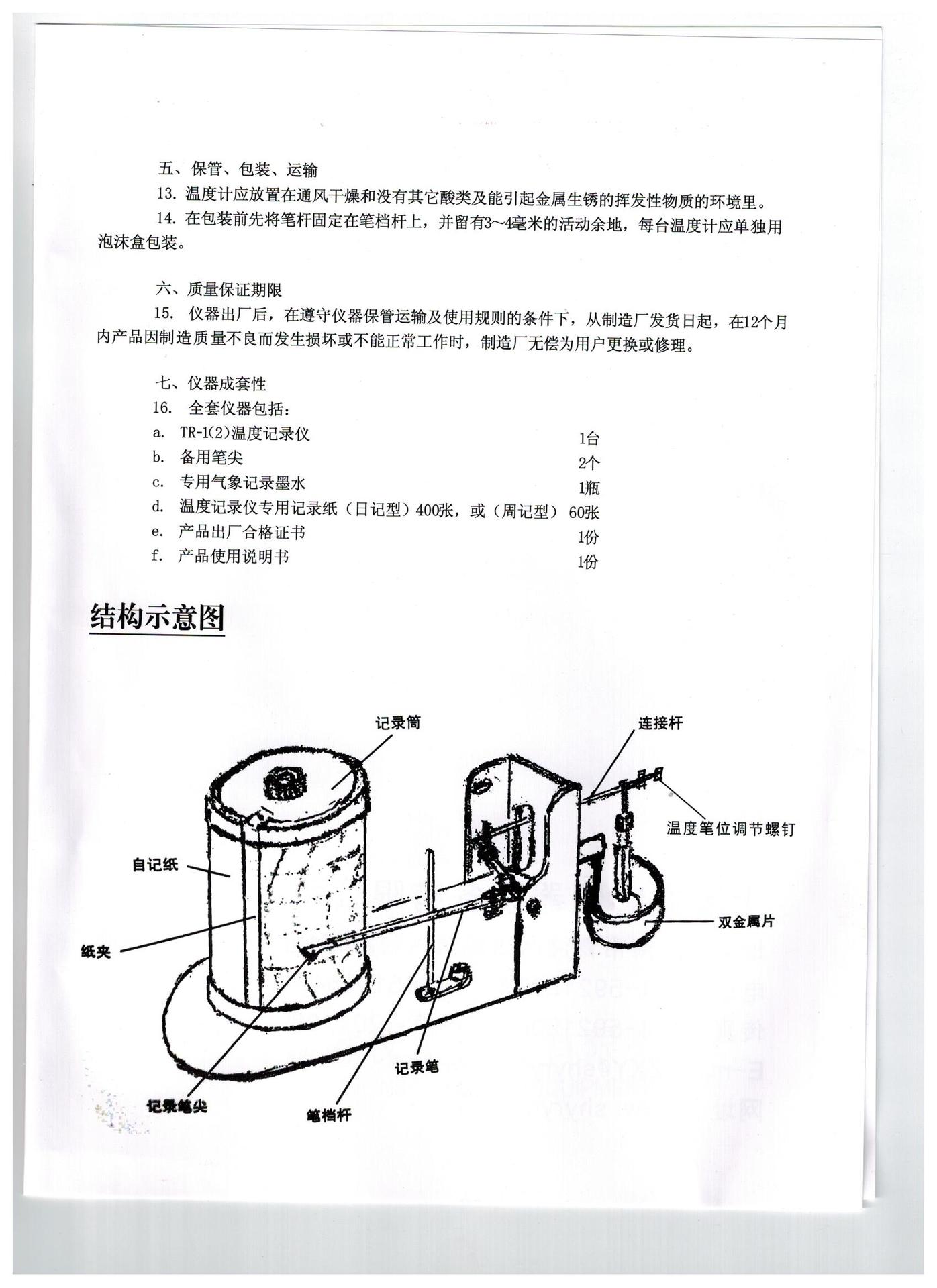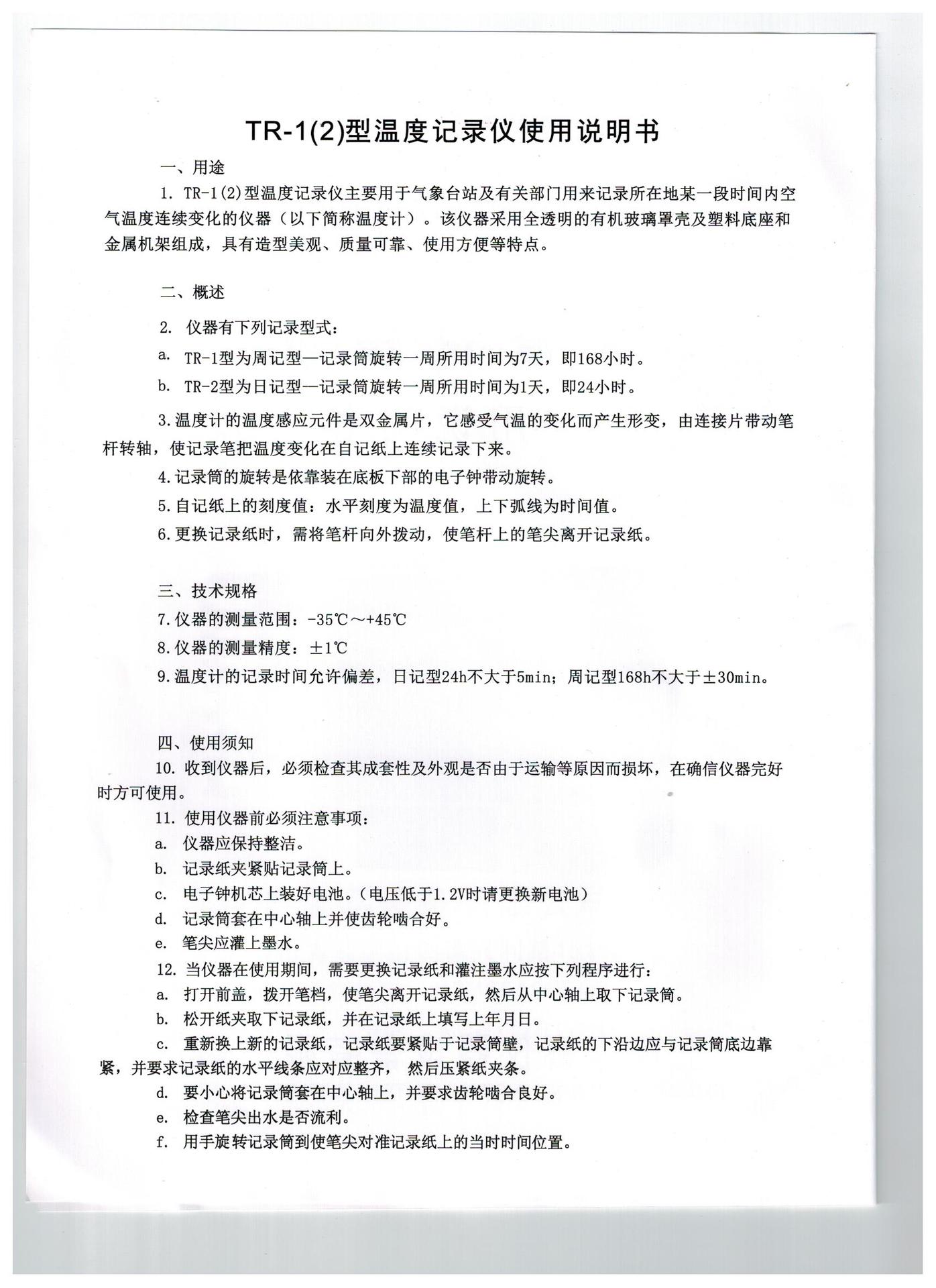 TR12溫度記錄儀是氣象台站及有關部門用了記錄所在地某一段時間內空氣溫度連續變化的儀器。儀器有日記型(記錄筒旋轉一周為24小時),周記型(記錄筒旋轉周為7天即168小時),周日兩用型(一周記和日記可以切換,如用周記紙,則儀器底座上的時間按鈕應按下7,如用日記紙則儀器底座上的時間按鈕應按下1),   上海91短视频版在线观看高清儀器設備有限公司是專門生產這種儀器的廠家,公司地址:上海市青浦區白鶴正興利路451號。電話:59219072,聯係人曾小姐,17765129546,13764265639.